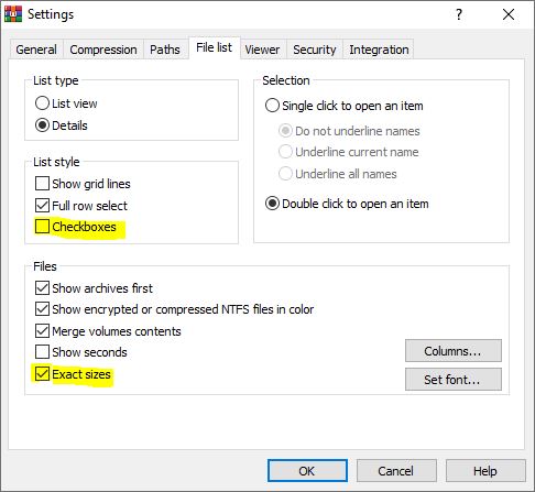 In addition to Exact sizes, a new Checkboxes option can now be used to select file list items which further improves the usability of this software.