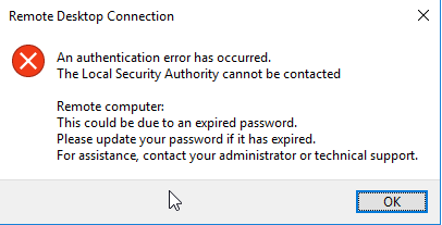 An authentication error has occurred. The Local Security Authority cannot be contacted.
